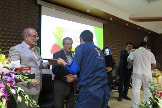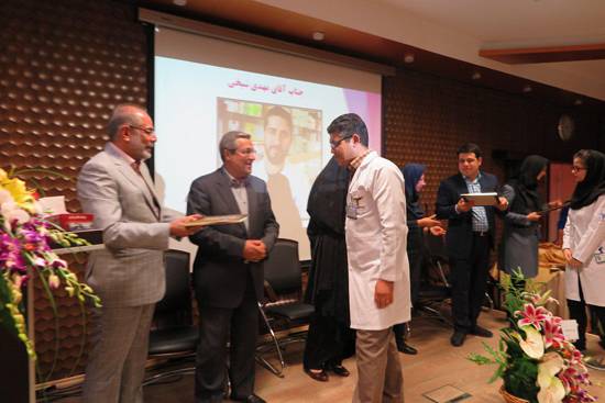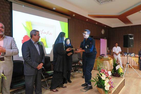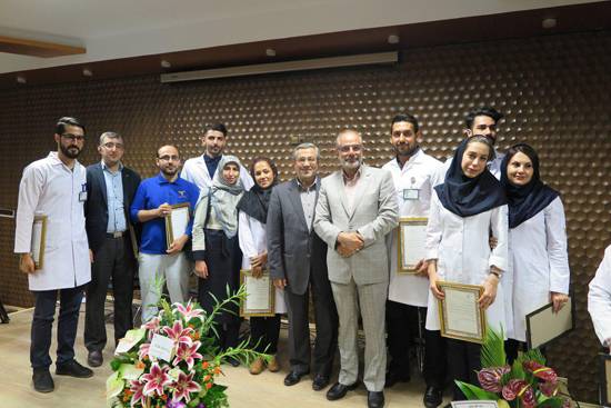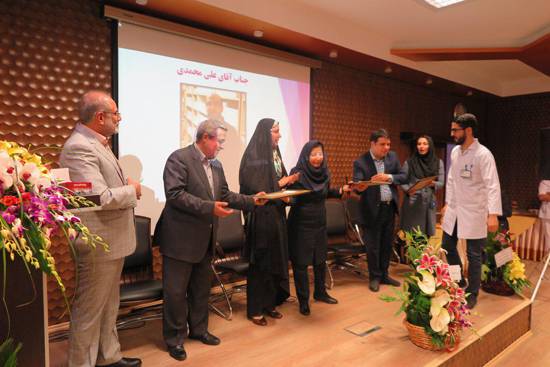 در پايان مراسم كارمندان نمونه سال 96 بيمارستان و داروخانه معرفي و با لوح تقدير و هداياي ويژه از ايشان تقدي شد.
