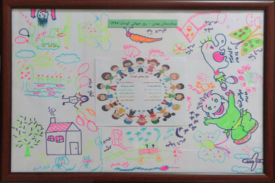 پايگاه يك هفته اي مشاوره تغذيه كودكان مطابق با عناوين شعارهاي هفته كودك و برگزاري جشن اختتاميه همراه با برگزاري مسابقه نقاشي و تهيه تابلو يادبود از نقاشي كودكان، عيادت از كودكان بستري در بخش كودكان و اهداء جوايز به رسم يادبود در لابي بيمارستان بهمن به مناسبت هفته ملي كودك (15 لغايت 21 مهر 96) با همكاري سركار خانم الهام مسگري سوپوروايزر ارتقاء سلامت بيمارستان برگزار گردید.